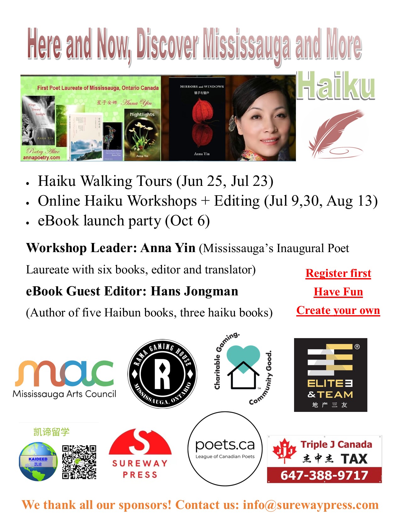 Here and Now, Discover Mississauga and More will be an eBook that we hope to create from two haiku walking tours and three online haiku workshops. One of 2022 MAC MicroGrant Winning Programs, Everyone is welcome to join us no matter where you live.