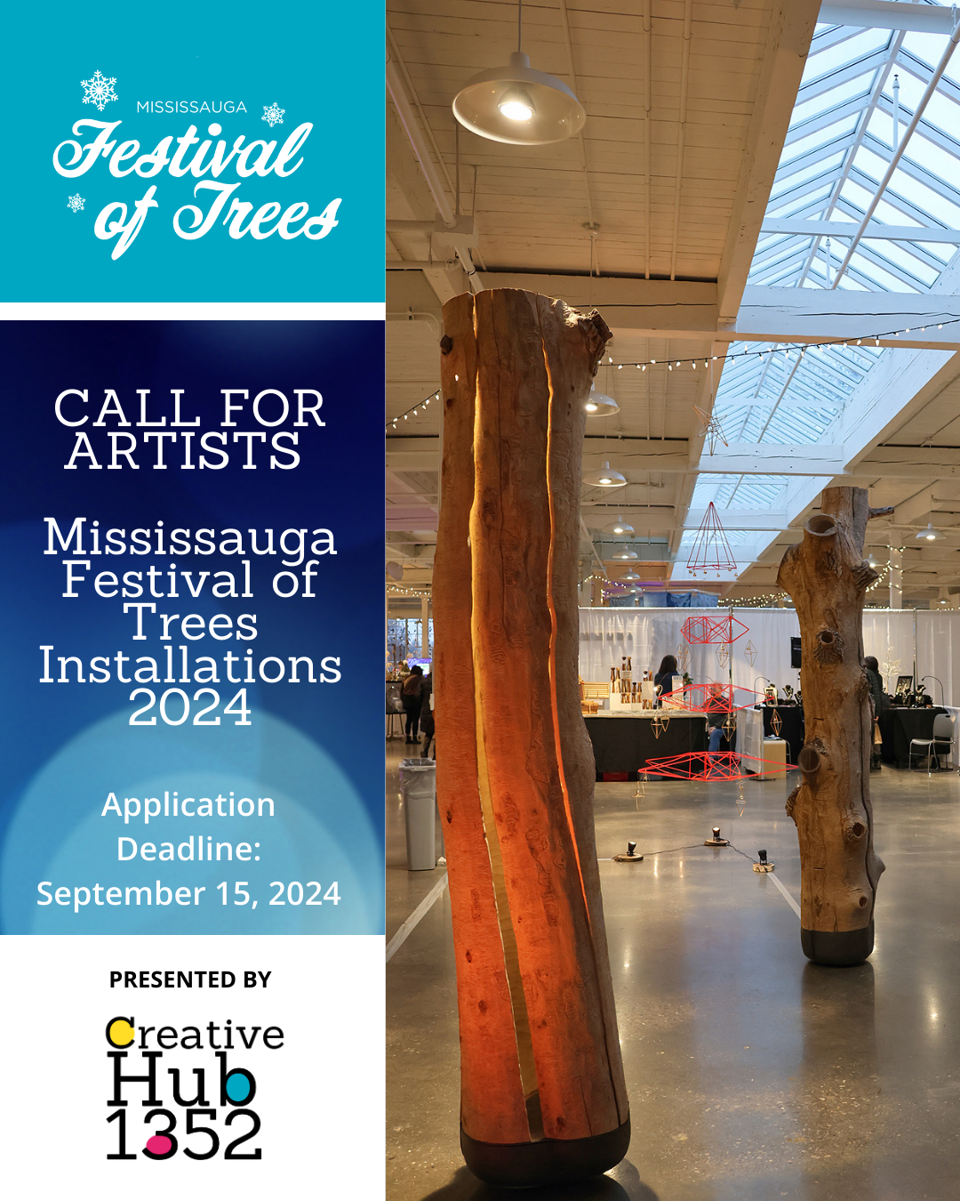 CreativeHub 1352 invites artists and artist collectives/groups to submit proposals for Temporary Tree Art Sculptures and Installations to be presented at the Small Arms Inspection Building as part of the Mississauga Festival of Trees in December 2024.