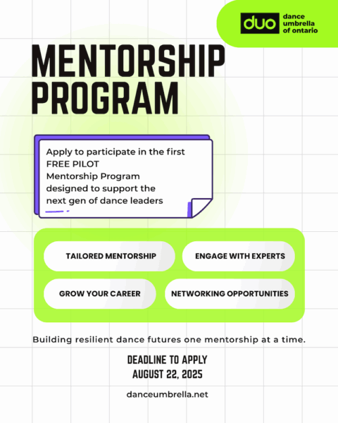 Dance Umbrella of Ontario is piloting a FREE 5-month mentorship program to support the next generation of dance leaders