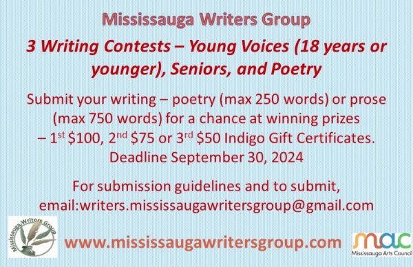 Mississauga Writers Group’s annual Writing Contests are back on!