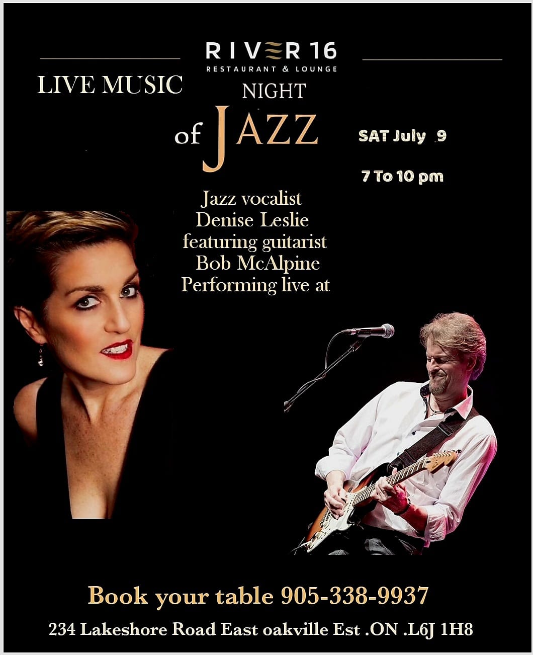 Join the opening of new restaurant and lounge River 16 in Oakville with jazz vocalist Denise Leslie and guitarist Bob McAlpine. Reverse a table for a delectable dinner, grab a cocktail and enjoy great music.