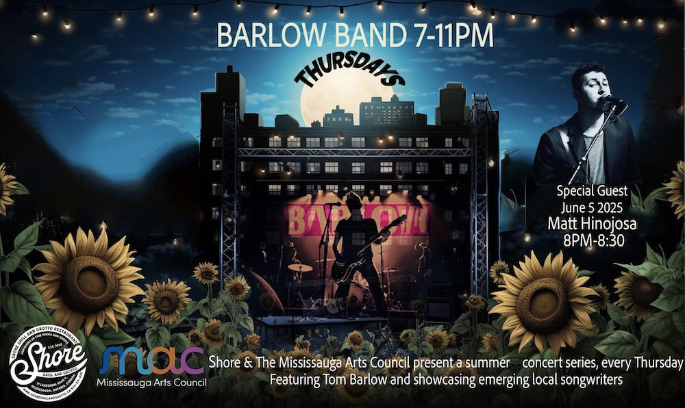 Shore Grill and Grotto and the Mississauga Arts Council present a summer concert series every Thursday, featuring Tom Barlow and a featured emerging local singer-songwriter.