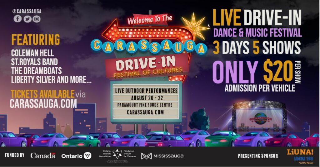 We are counting down to the first-ever Carassauga Drive-In Festival Of Cultures. Our 3 Day festival features outstanding music recording artists’ sensations, food trucks, and the live concert experience from the comfort of your own car.