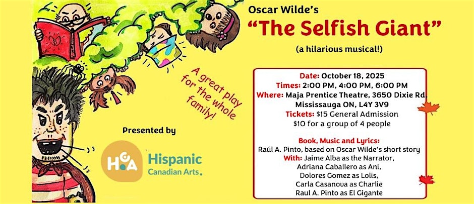 Oct 18 2:00 pm - 3:30 pm Recurring The Selfish Giant: The Musical Maja Prentice Theatre 3650 Dixie Road, Mississauga Event Details Get Directions