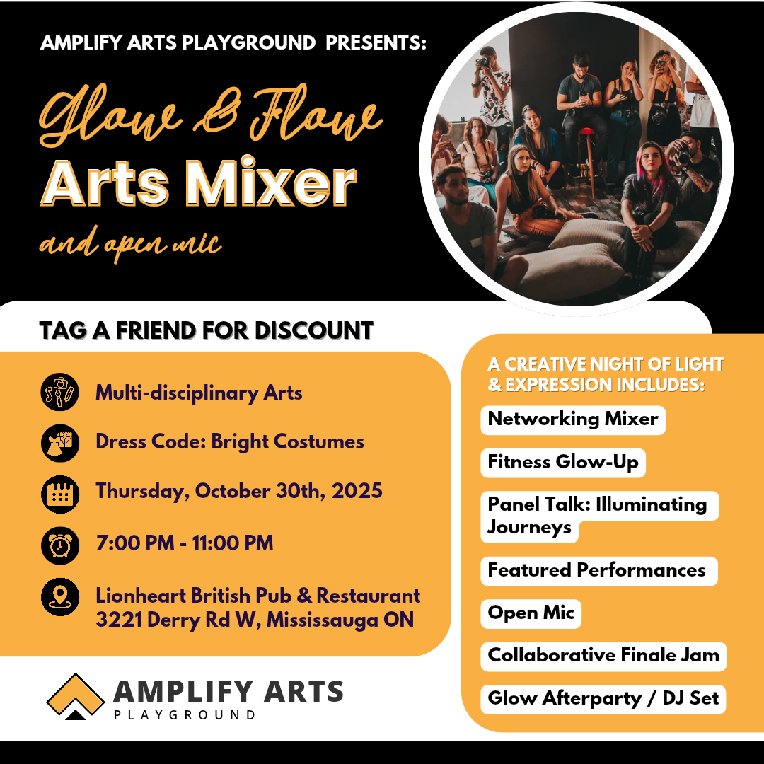 Oct 30 7:00 pm - 11:00 pm Glow & Flow Arts Mixer Lionheart British Pub & Restaurant 3221 Derry Rd W, Mississauga Event Details Get Directions