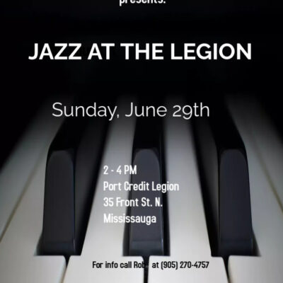 Mississauga Big Band Jazz Ensemble is back at the Port Credit Legion for their monthly gig. Come out and enjoy an afternoon of LIVE big band jazz. Happening June 29 from 2-4 PM. Admission is pay what you can.
