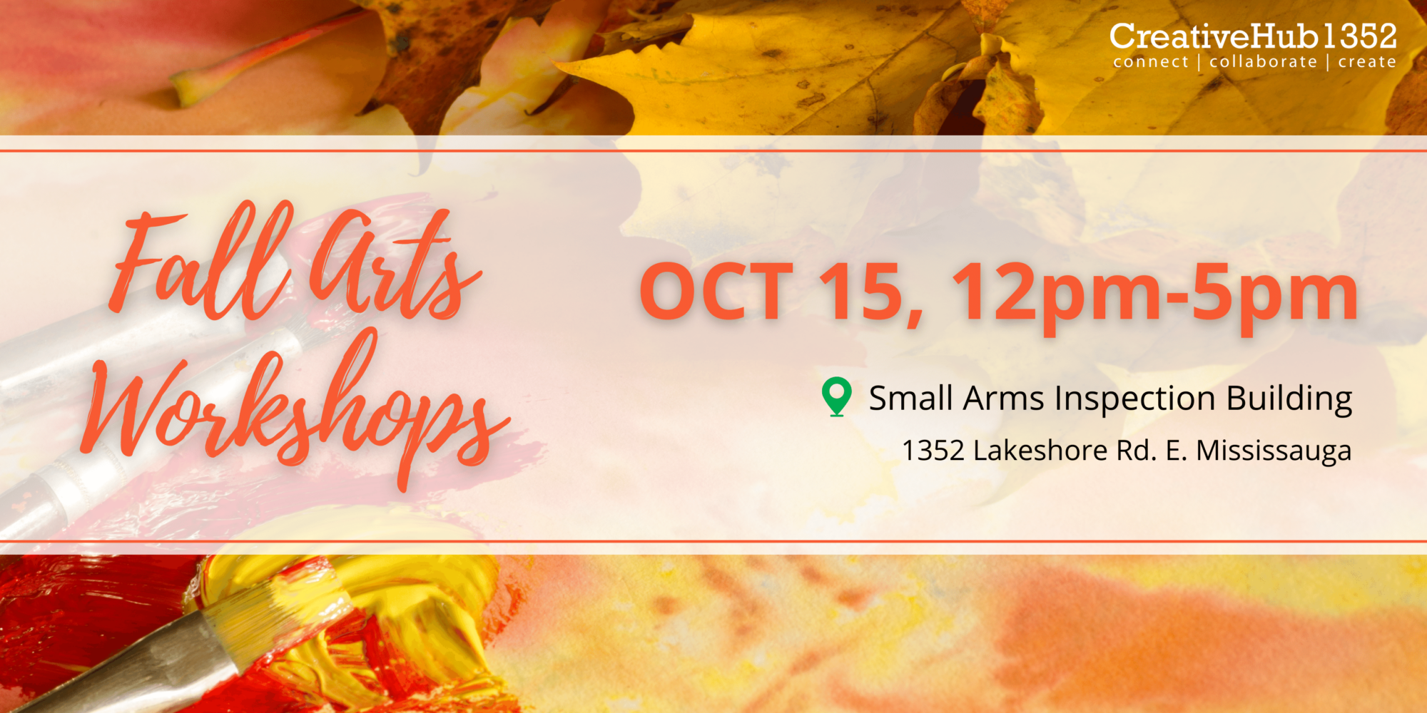 Visit the Small Arms Inspection Building on October 15th & 16th to celebrate fall with a weekend of arts workshops, seasonal produce, and family fun presented by CreativeHub 1352! On October 15, join them for a series of fall-themed workshops designed for participants of all ages – a perfect experience for families and children! Also, join them at the Lakeview Farmers’ Market on October 16 from 9 AM – 2 PM to browse local specialty fall produce, live performers, fall photo opportunities, and a free yoga class!