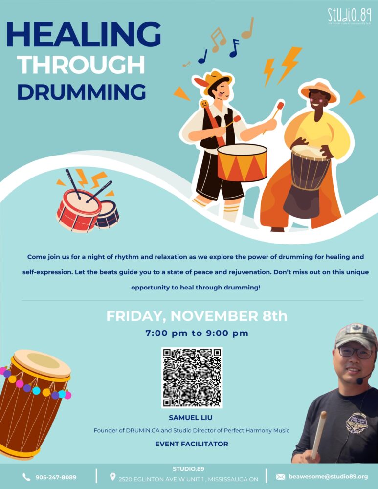Join us for Healing through Drumming—part of Studio.89’s Impact Arts Series—on November 8th, from 7-9pm. This evening is dedicated to uplifting mental well-being through the power of rhythm.