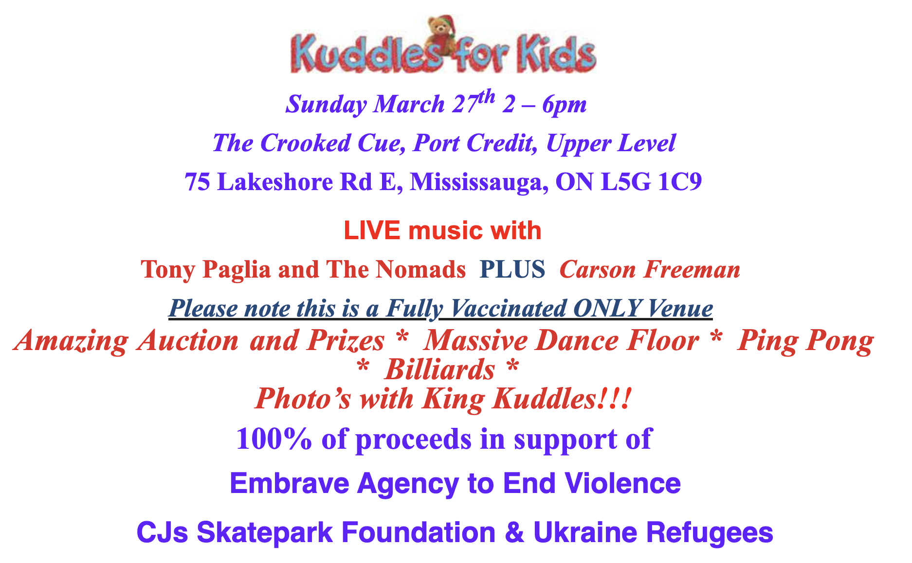 for this phenomenal afternoon with CONTINUOUS LIVE music, schmoozing, massive dance floor, billiards, ping pong, photo booth, raffle/auction ALL in support of KIDS IN NEED?