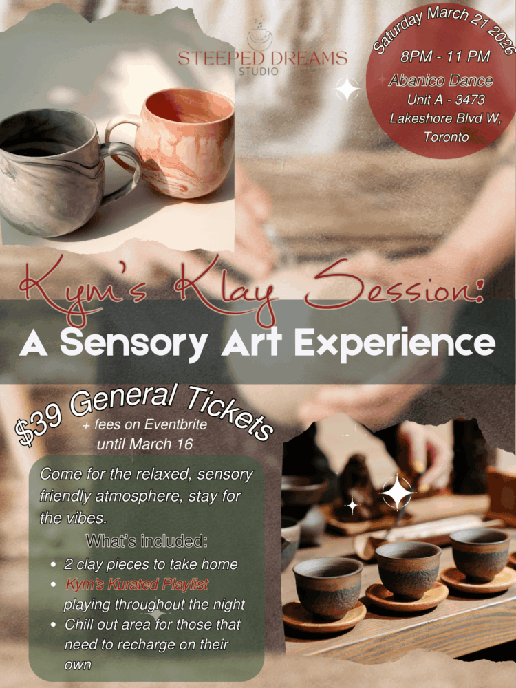 Join us for this inclusive, sensory friendly clay night as we launch Steeped Dreams Studio – a new creative space and community dedicated to sensory friendly music, and events & experiences. Founded by Kym Tea, a multi-faceted artist, and has a passion for inclusion and sensory friendly spaces.