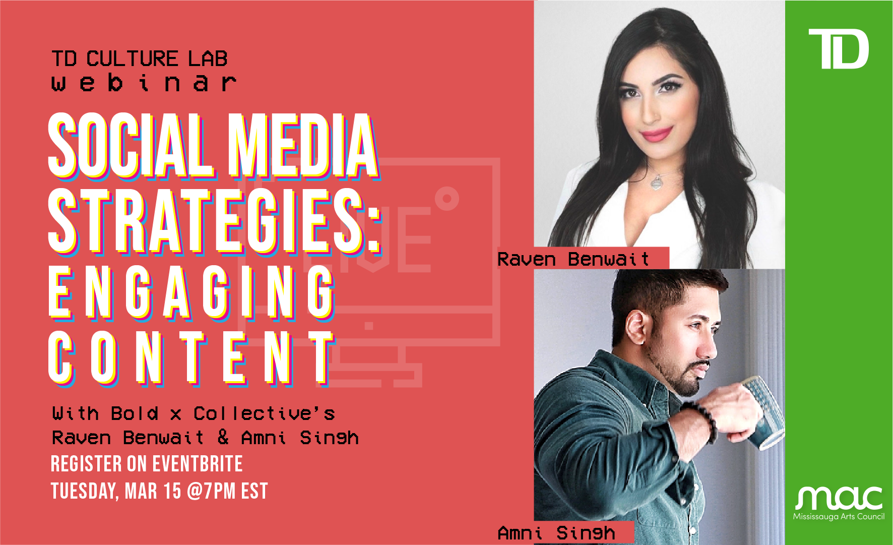 TD Culture Lab - Social Media Strategies: Engaging Content Register here:Â https://www.eventbrite.ca/.../td-culture-lab-social-media... Join MAC on Tuesday, March 15 from 7-8:30 PM for Social Media Strategies: Engaging Content with Raven Benwait and […]