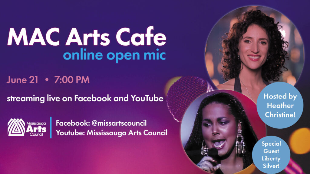Tune in on MAC’s Facebook and YouTube pages for LIVE performances from local talent! Hosted by award-winning singer-songwriter, Heather Christine! Featuring Special Guest multiple Juno and Grammy (collaboration) award-winning recording artist, Liberty Silver! Want to perform? MAC is currently taking online performer auditions here: www.mississaugaartscouncil.com/macartscafe/