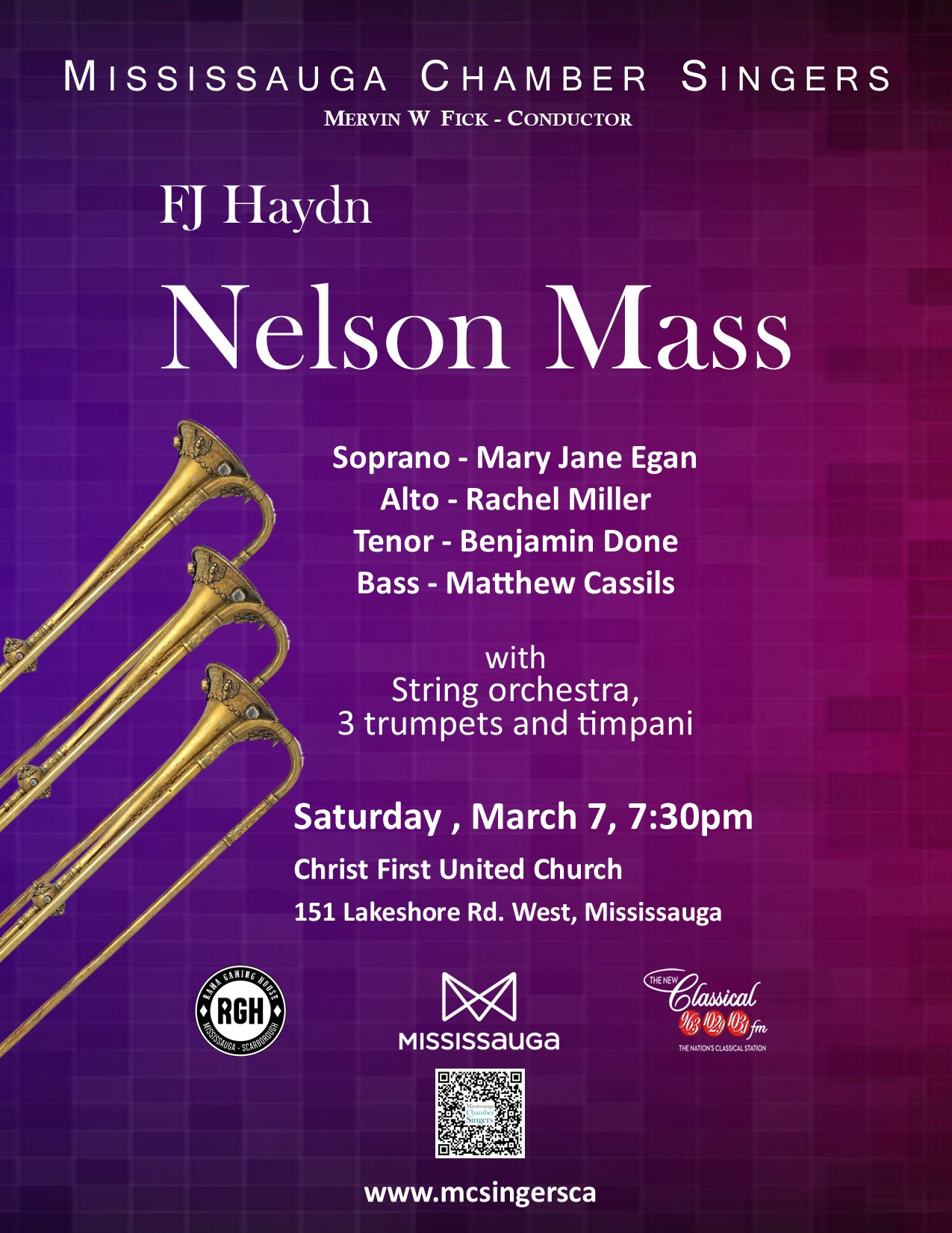 Mar 7 7:30 pm - 9:30 pm FJ Haydn – Lord Nelson Mass Christ First United Church 1700 Mazo Crescent, Mississauga Event Details Get Directions