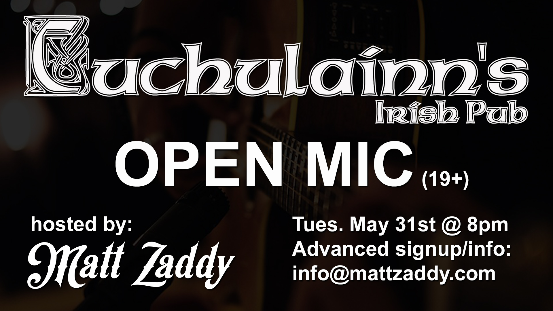We are back for another edition of: CUCHULAINN'S OPEN MIC hosted by Matt Zaddy Tues. May 31st - 8pm-1130pm 19+ event Advanced signup to perform Email: info@mattzaddy.com I'm happy to say we are now back at Cuchulainn's in person and we are so excited! For the time being, we are going to keep things stripped […] |
