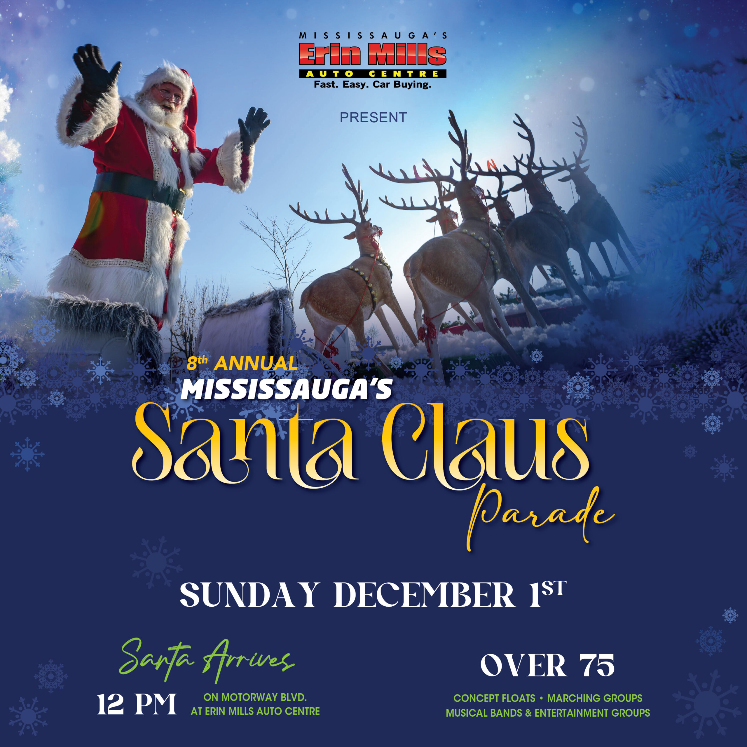 The Mississauga Santa Claus Parade returns! Happening December 1st, 2024 the Mississauga Santa Claus parade features over 75 floats, groups, performance, music and of course Mrs Claus and Santa himself! The parade starts at noon and the route is: Dunwin at Glen Erin to Motorway Blvd. Motorway Blvd to Woodchester in Mississauga.