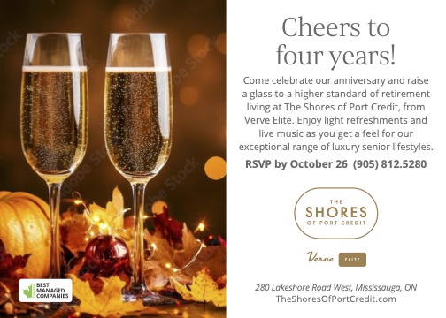 Come celebrate our anniversary and raise a glass to a higher standard of retirement living at The Shores of Port Credit, from Verve Elite. Enjoy light refreshments and live music as you get a feel for our exceptional range of luxury senior lifestyles.