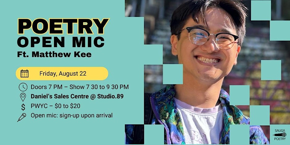 Join Sauga Poetry for a poetry open mic with featured artist Matthew Kee. Come perform or just watch. All experiences levels are welcome!