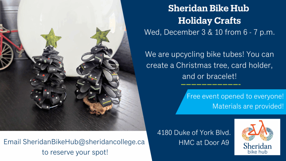 The Sheridan Bike Hub at the Hazel McCallion Campus is hosting an upcycling Holiday Craft workshop!