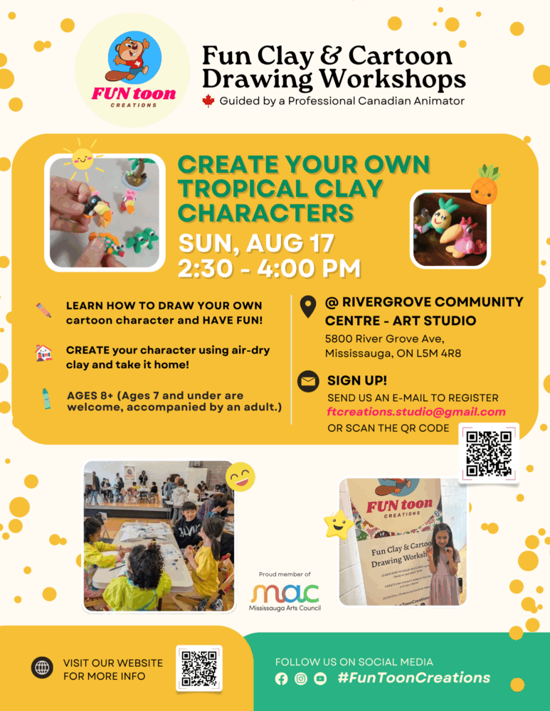 FUN CLAY and CARTOON DRAWING WORKSHOP. Guided by a Professional Canadian Animator.