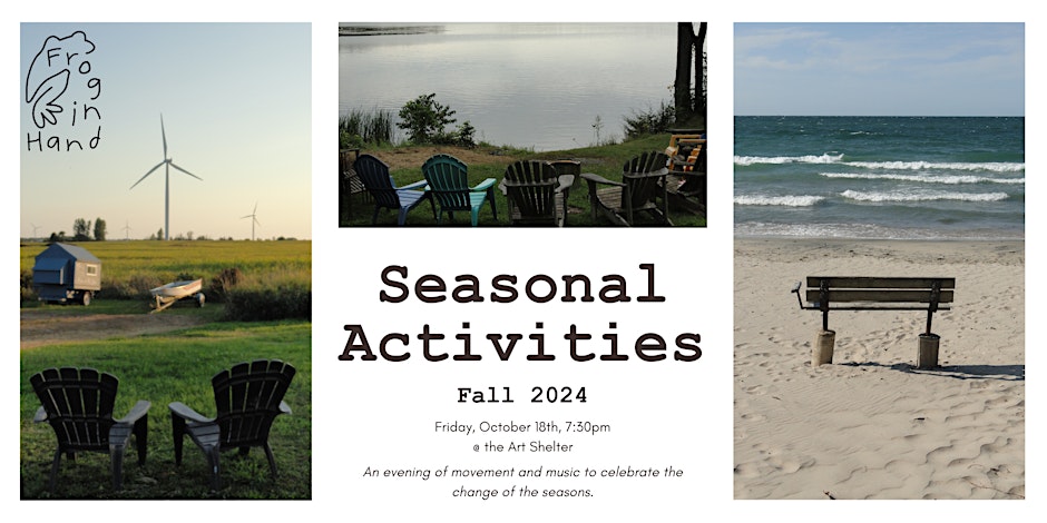 Seasonal Activities, a performance series – Frog in Hand Dec 7 December 7, 2025 @ 8:32 pm - 8:30 pm EST Seasonal Activities, a performance series – Frog in Hand