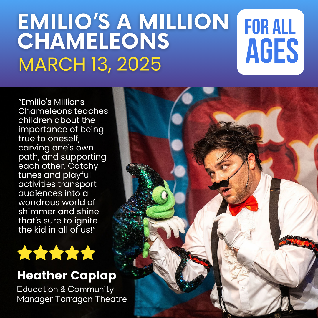 EMILIO’S A MILLION CHAMELEONS | A Puppet Show in Mississauga During March Break Mar 13 Featured 3:00 pm - 8:00 pm EMILIO’S A MILLION CHAMELEONS | A Puppet Show in Mississauga During March Break $20