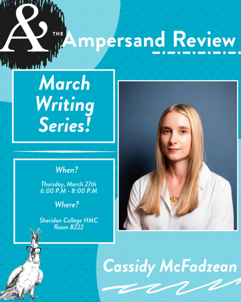 Cassidy McFadzean is the author of three books of poetry: Crying Dress (House of Anansi, 2024), Drolleries (McClelland & Stewart 2019), shortlisted for the Raymond Souster Award, and Hacker Packer (M&S 2015), winner of two Saskatchewan Book Awards and finalist for the Gerald Lampert Award. Her fiction has appeared or is forthcoming in Joyland, The Walrus, Hazlitt, and Dead Writers (Invisible Publishing, 2024). Her chapbook Third State of Being (Gaspereau Press, 2022) was a finalist for the bpNichol Chapbook Award. Cassidy was born in Regina, and currently lives in Toronto.