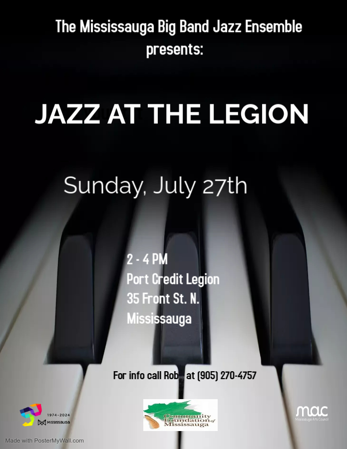 Jazz at the Legion by Mississauga Big Band Jazz Ensemble | Jul 17, 2025 | Music Join us for an afternoon of LIVE big band jazz at our monthyl gig at the Port Credit Legion,