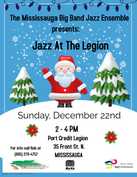 Come out and enjoy the Christmas classics done in a swingin’ jazz style with the Mississauga Big Band Jazz Ensemble and our vocalist Denise Leslie.