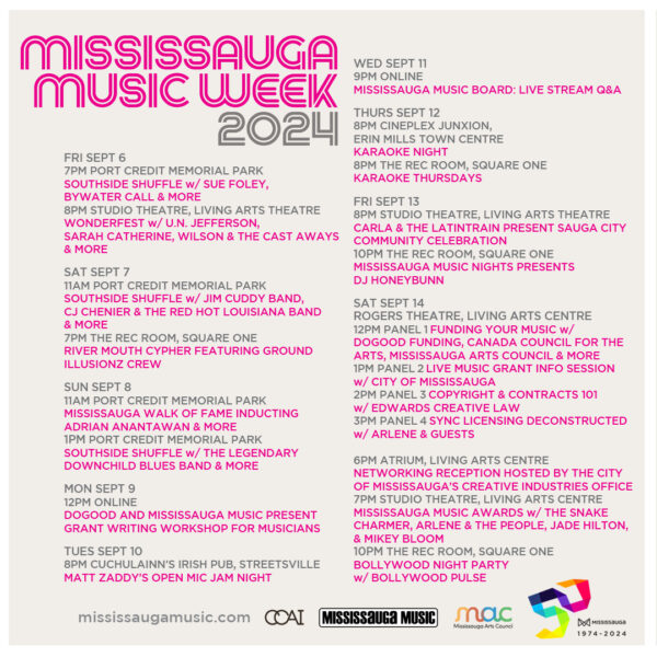 Mississauga Music Week begins Friday, September 6 and runs until Saturday, September 14 at venues across Mississauga!