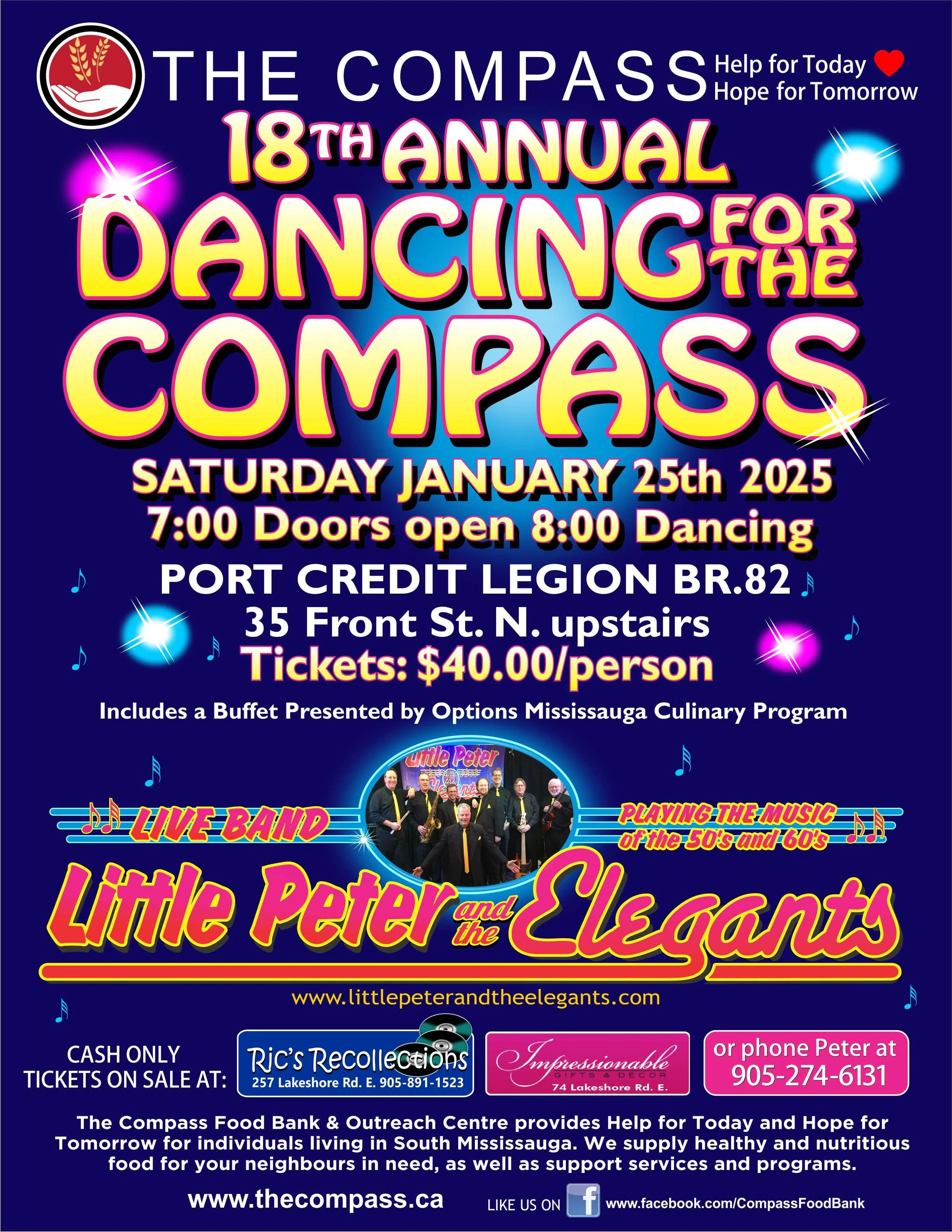 January 25th at 8:00 p.m. – The 18th Annual Dancing for The Compass returns to the Port Credit Legion. Tickets are $40.00/person and available by reaching Peter Toller at 905-274-6131 or toller@sympatico.ca
