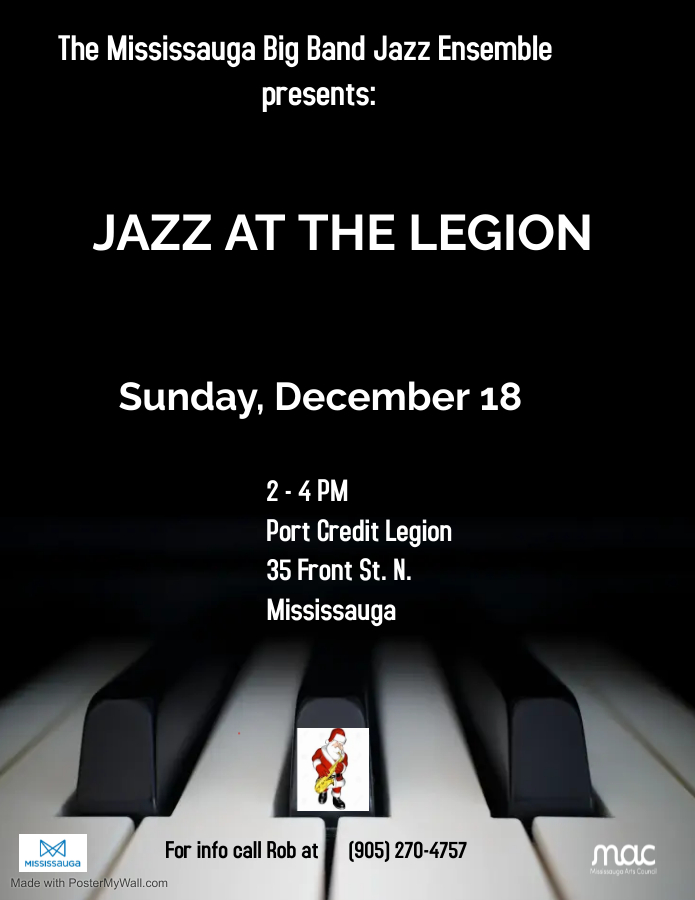 Come out and celebrate the Christmas holiday season with the Mississauga Big Band Jazz Ensemble. Inspirational talk and LIVE big band Christmas music. No charge but food and / or $ donations appreciated. Join them at Cooksville United Church (2500 Mimosa Row) on Sunday, December 11 at 7 PM!