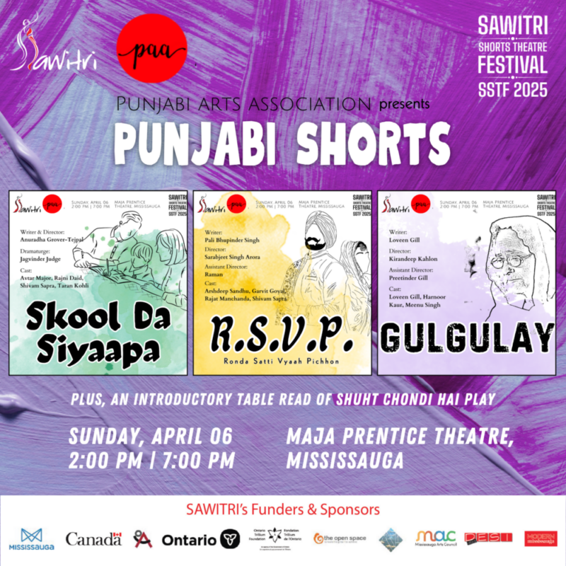 Maja Prentice Theatre 3650 Dixie Road, Mississauga, Ontario, CanadaAs a part of SAWITRI Shorts Theatre Festival, Punjabi Arts Association is proud to present three plays by Anuradha Grover-Tejpal, Pali Bhupinder Singh and Loveen Gill. The plays are a mix of drama and comedy and will be rooted in characters that is universal to today's generation. Get tickets here: https://www.zeffy.com/en-CA/ticketing/sstf-2025-punjabi
