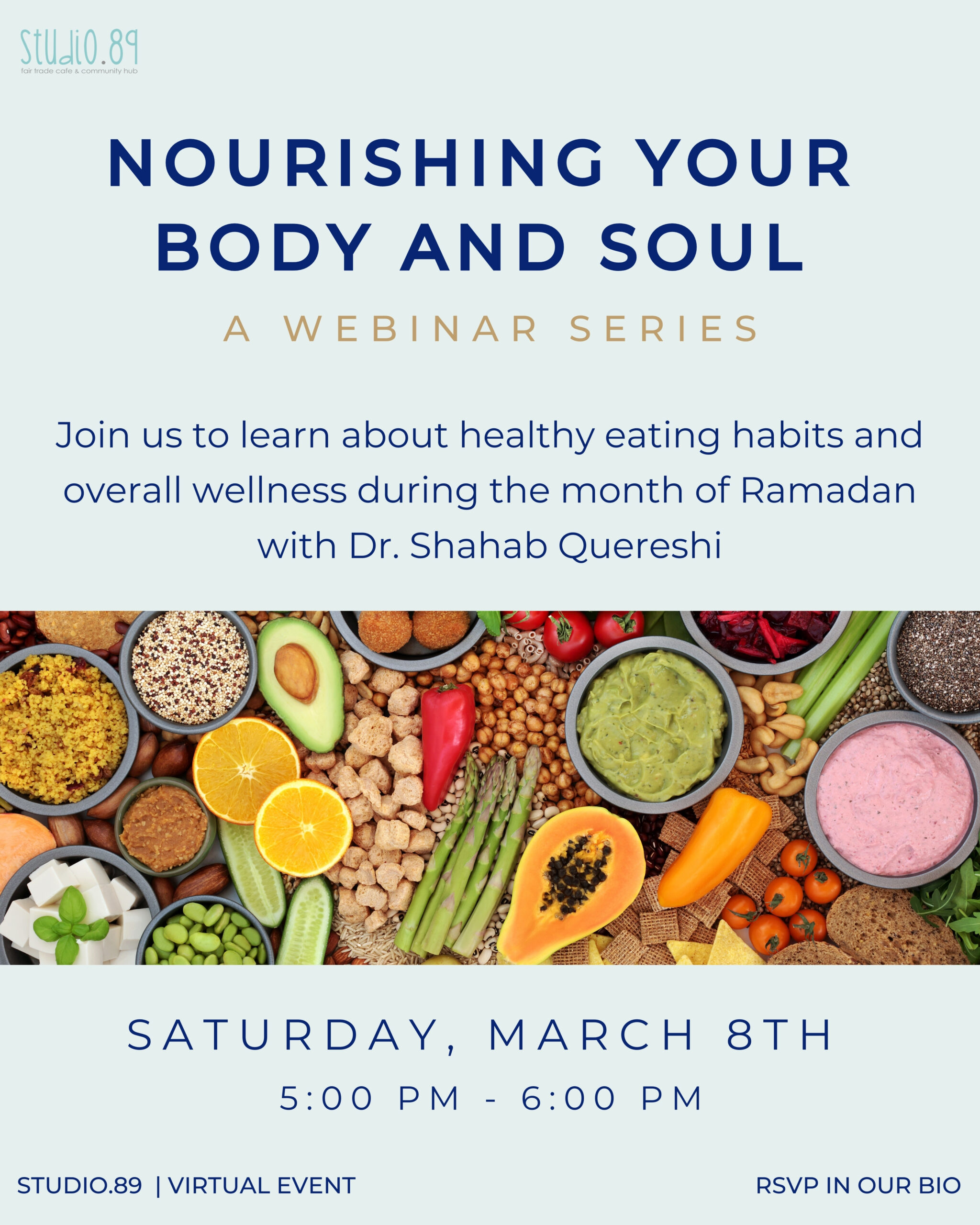 Join us for a special online event on nourishing your body and soul during the month of Ramadan. Dr. Shahab Qureshi, a consultant in Infectious Diseases and Internal Medicine, American Board of Lifestyle Medicine, and Founder of EatToLive.md, will share his insights on a plant-based diet in his field. This session will explore healthy eating […]