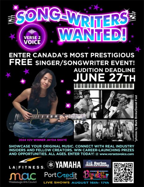 Verse To Voice is Canada's premier songwriting event and community. Centred around our amazing annual competition.. With great prizes, opportunities, mentorship and events.. But fuelled by creating a unique Canadian community specifically for songwriters and to support their growth in the Canadian Music industry.