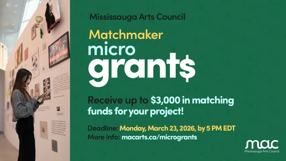 In the Winter 2026 MicroGrant funding round, MAC is offering Matchmaker MicroGrants to Individual Artists.ย Matchmaker MicroGrants provide 50% matching funds to artist-led projects from any artistic discipline up to a maximum of $3000. To be eligible for funding, projects must demonstrate a confirmed investment in the project at the time of application and must include a public-facing event or activity in Mississauga, engage audiences in Mississauga, and pay artist fees to Mississauga-based artists.